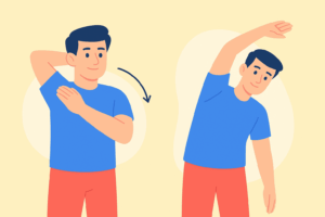 • ارفع يدك اليمنى فوق، وميّل جسمك يسار شوي.